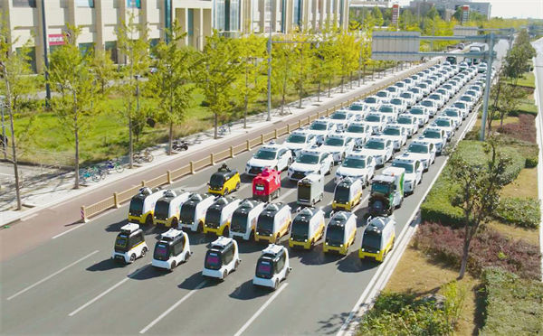 如今,新石器在亦庄陆续部署163台无人车,建成全球首个由无人车构成的共配中心。未来,包裹通过“飞车轨道”直达车载货舱,实现分钟级装载、小时级投递。